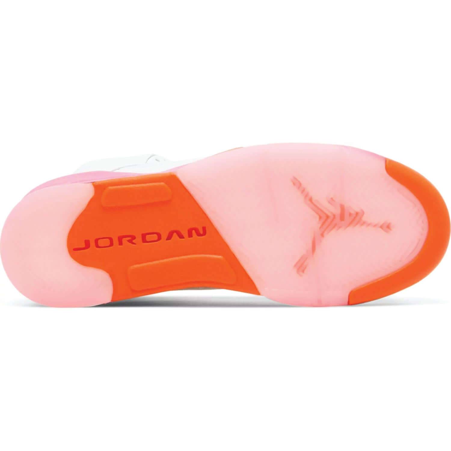 Made for big kids, the Air Jordan 5 Retro GS ‘Pinksicle’ updates the legacy silhouette with candy-bright pops of color. The mid-top sports a white leather upper with orange lace locks and translucent quarter-panel netting. Jumpman branding adorns the heel overlay and breathable mesh tongue in bright pink. The pastel hue is repeated on the polyurethane midsole, featuring visible Air-sole cushioning in the heel and signature shark tooth detailing in Safety Orange.