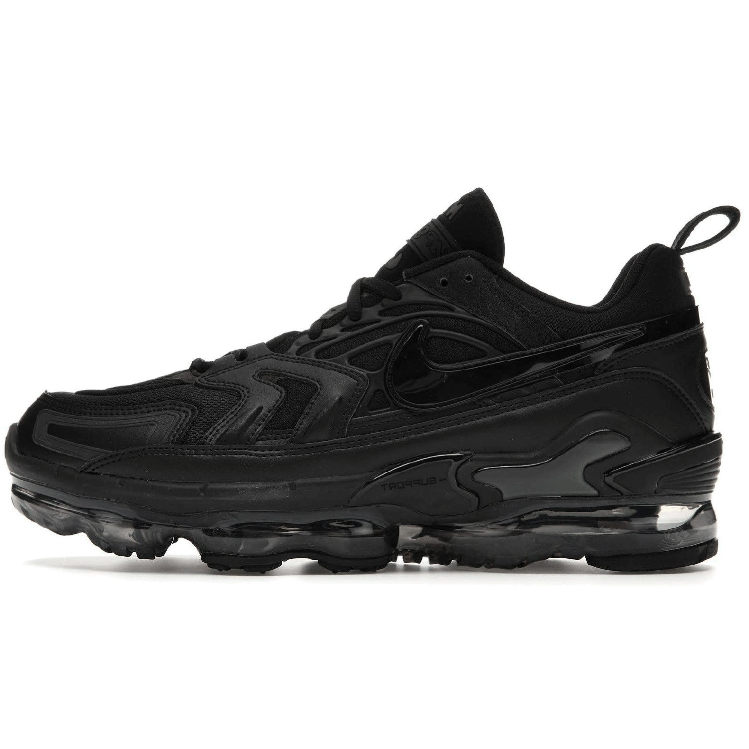 The Air VaporMax EVO ‘Black’ is a Nike shoe that features a sleek and modern design. The shoe was designed by Zachary Elder, a Nike designer who is known for his work on the Air Max 2090 and the Air Max 90 FlyEase and it was released in 2021 classic sneaker. The Air VaporMax EVO ‘Black’ is a stylish and modern sneaker that combines the latest technology with a sleek design. The shoe features a primarily black colorway, making it versatile and easy to match with various outfits. The upper of the Air VaporMax EVO ‘Black’ is constructed with a combination of materials such as synthetic overlays and breathable mesh. One of the standout features of the Air VaporMax EVO is its revolutionary VaporMax Air unit. The Air unit is designed to provide responsive cushioning and a comfortable ride. The outsole of the Air VaporMax EVO is made of durable rubber, ensuring excellent traction on various surfaces. This makes the shoe suitable for both everyday wear and athletic activities. Overall, the Air VaporMax EVO ‘Black’ combines style, comfort, and innovative technology to deliver a modern and versatile sneaker option for those who appreciate both fashion and performance.