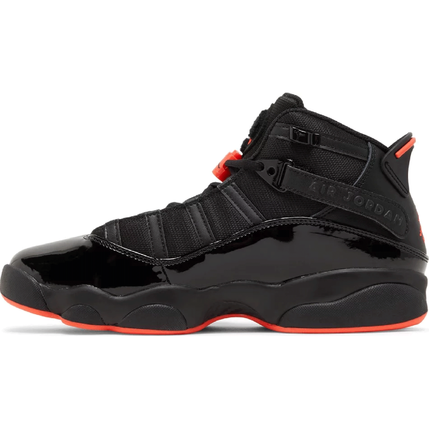 Though the Jordan 6 Rings doesn’t receive anywhere near the attention of its inspiring retros, it does still manage to make its mark on the market, mostly due to its holistic approach to the brand’s storied nostalgia. Not just does the silhouette borrow elements from Jordans 6 thru 12, it often sees itself dressed in colorways made famous by those retros. This time around it looks to an OG Air Jordan 6 for inspiration, with this Jordan 6 Rings “Black Infrared” bearing a very close resemblance to the AJ6 of the same name.