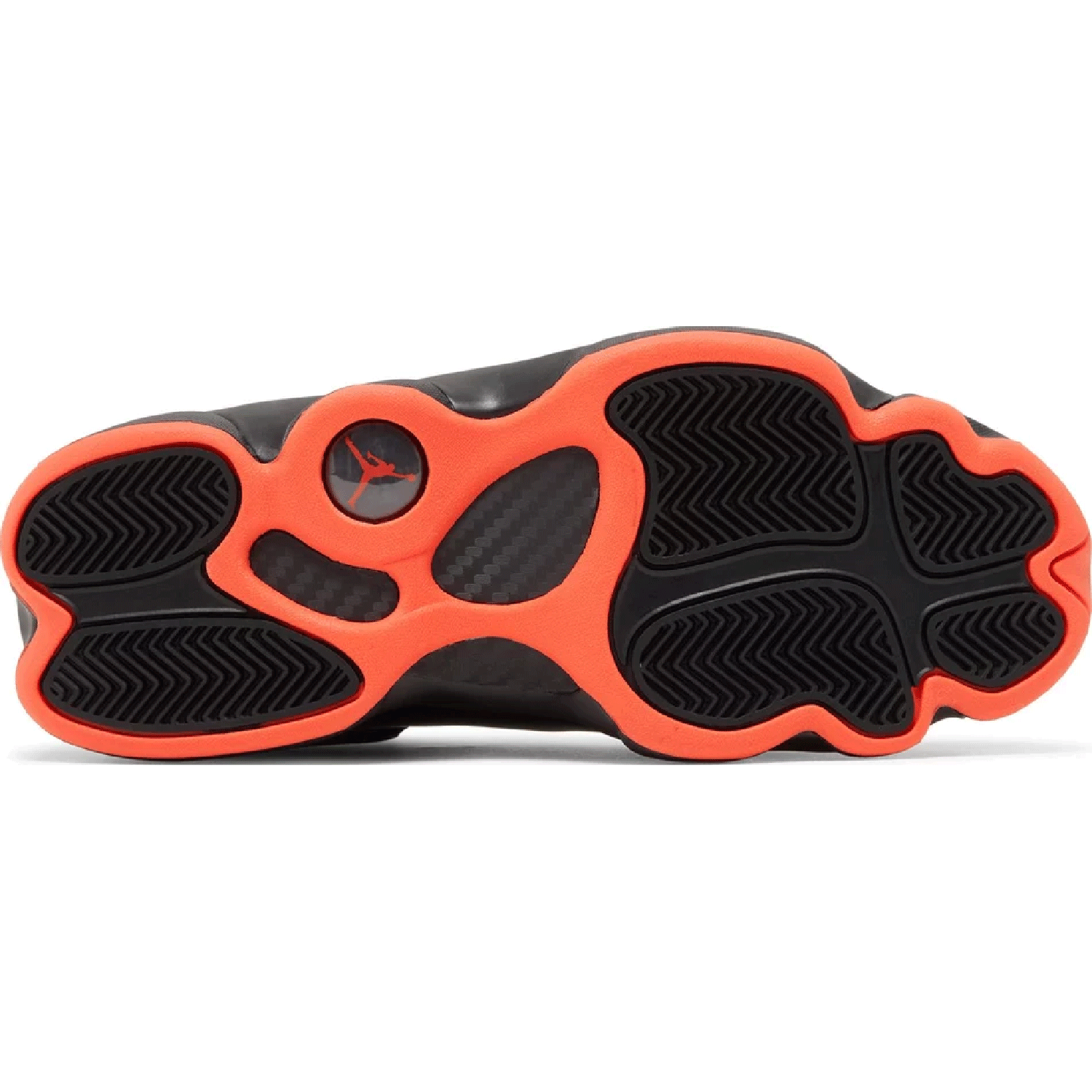 Like the OG, the pair presents with an all-black upper, and accents of infrared popping vividly throughout. Here, though, the materials work in the realm of the Jordan 11, including mesh uppers, patent leather mudguards, and leather backs. Murdered-out midsoles sport striking infrared outsoles, with lace locks, brand embroidery, and rear clips following suit.